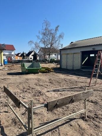 Anfang dieser Woche hat die Firma Stösser Bau aus Bühl-Vimbuch damit begonnen, die Baustelle einzurichten, das Baufeld und das Schnurgerüst für den Vermesser vorzubereiten, um im Anschluss mit dem Fundamentaushub und den Kanal- und Entwässerungsarbeiten zu beginnen.